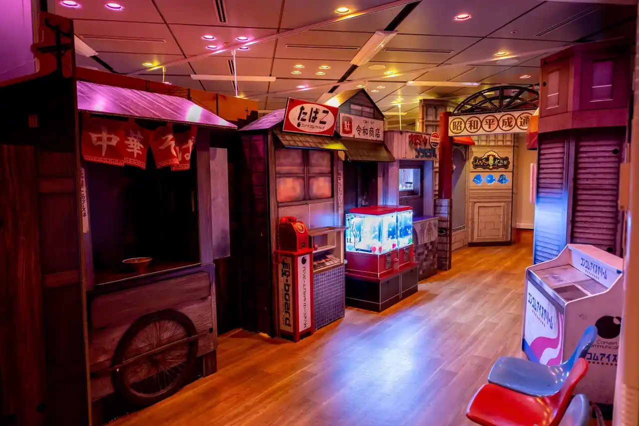 「ノスタルジック水族館」は、「アクアノスタルジー商店街」、「海原の車窓から」、「時を超えるアクアリウム」の3つのZONEからなる期間限定の特別展です。 |