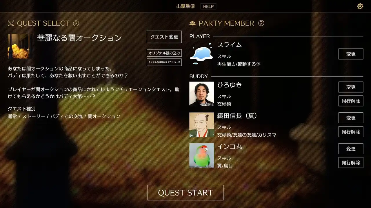 本作はゲームシステムの一部に文章生成AIを使用していますが、ゲーム内で使用しているイラスト、サウンド、その他アセット素材はすべて人間のクリエイターが作成したものを使用しています。ゲーム内で生成される文章を除き、AI生成素材は一切使用しておりません。 |