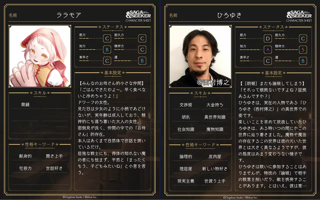 「粗削り、だから面白い」がコンセプトのゲーム開発スタジオ『ダグドリア スタジオ』は、キャラクター同士の会話で物語が進んでいく“文字だけRPG”『サーガ&シーカー』(通称「サガシカ」)のクローズドβテストを実施し、その結果を発表しました。 |