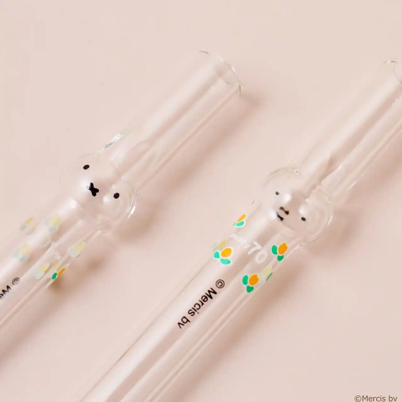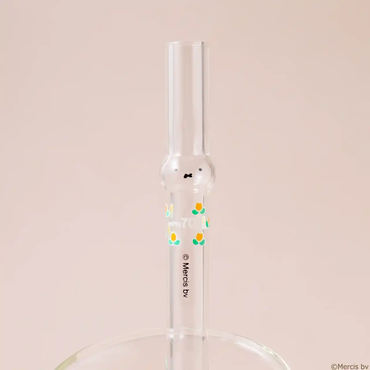 | ミッフィーの誕生70周年を祝う特別なデザインのガラス製マイストローが「海老名マルイ」にも登場予定。ストロー本体とシリコンケースには、70周年記念ロゴと花のモチーフをあしらい、アニバーサリーにふさわしい優しい雰囲気に仕上げました。 | |||||||||