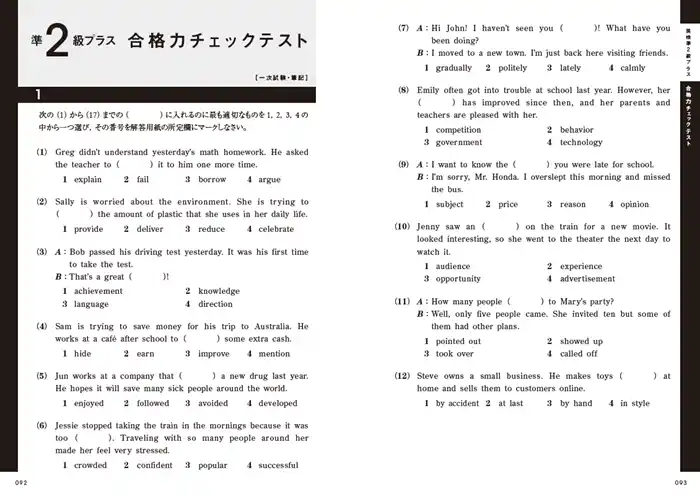 ▲巻末に収録の「合格力チェックテスト」は、編集部オリジナルの模擬試験問題。新設の準2級プラスも、この模擬試験でしっかり対策できます。 |