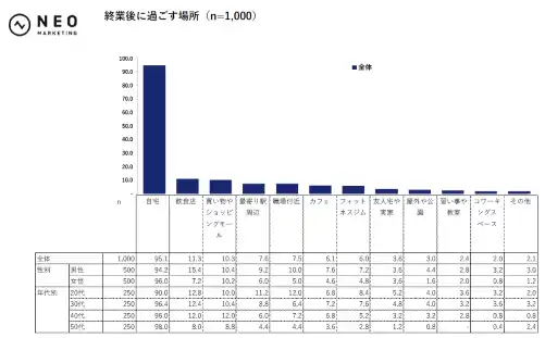 ・全体の95.1%が、終業後に自宅で過ごす。 |