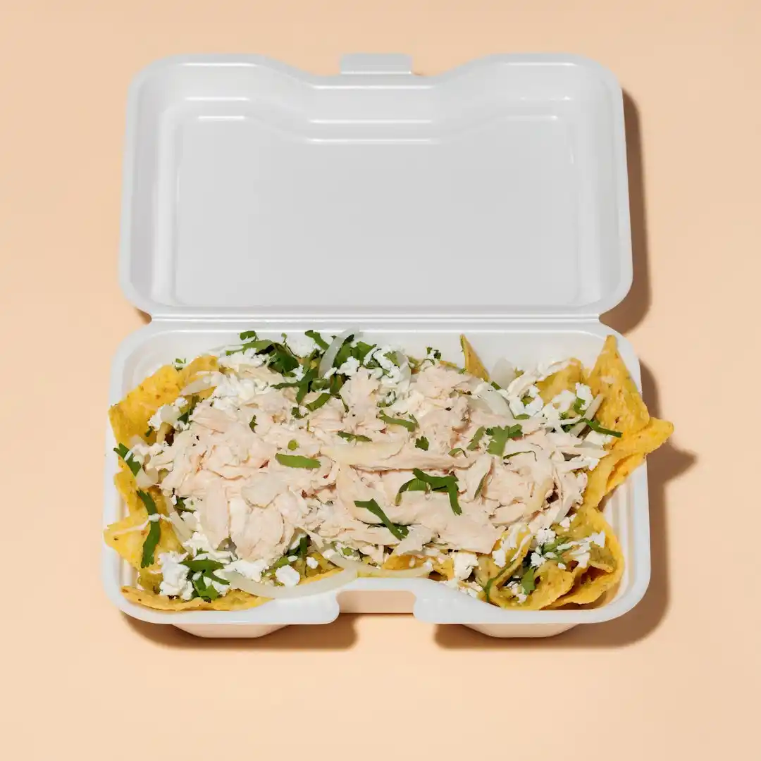 DESAYUNO(朝ごはん) の看板メニューは、メキシコの定番朝食 「Chilaquiles(チラキレス)」。 ベースとなる Totopo(トトポ) は、カットしたトルティーヤを揚げたもので、いわゆる“トルティーヤチップス”にあたります。 サルサをまとわせながら仕上げるため、ひと口目の軽いパリッと感から、次第にサルサを吸って“クタクタ”と深い味わいへ変化していくのが特徴です。 |