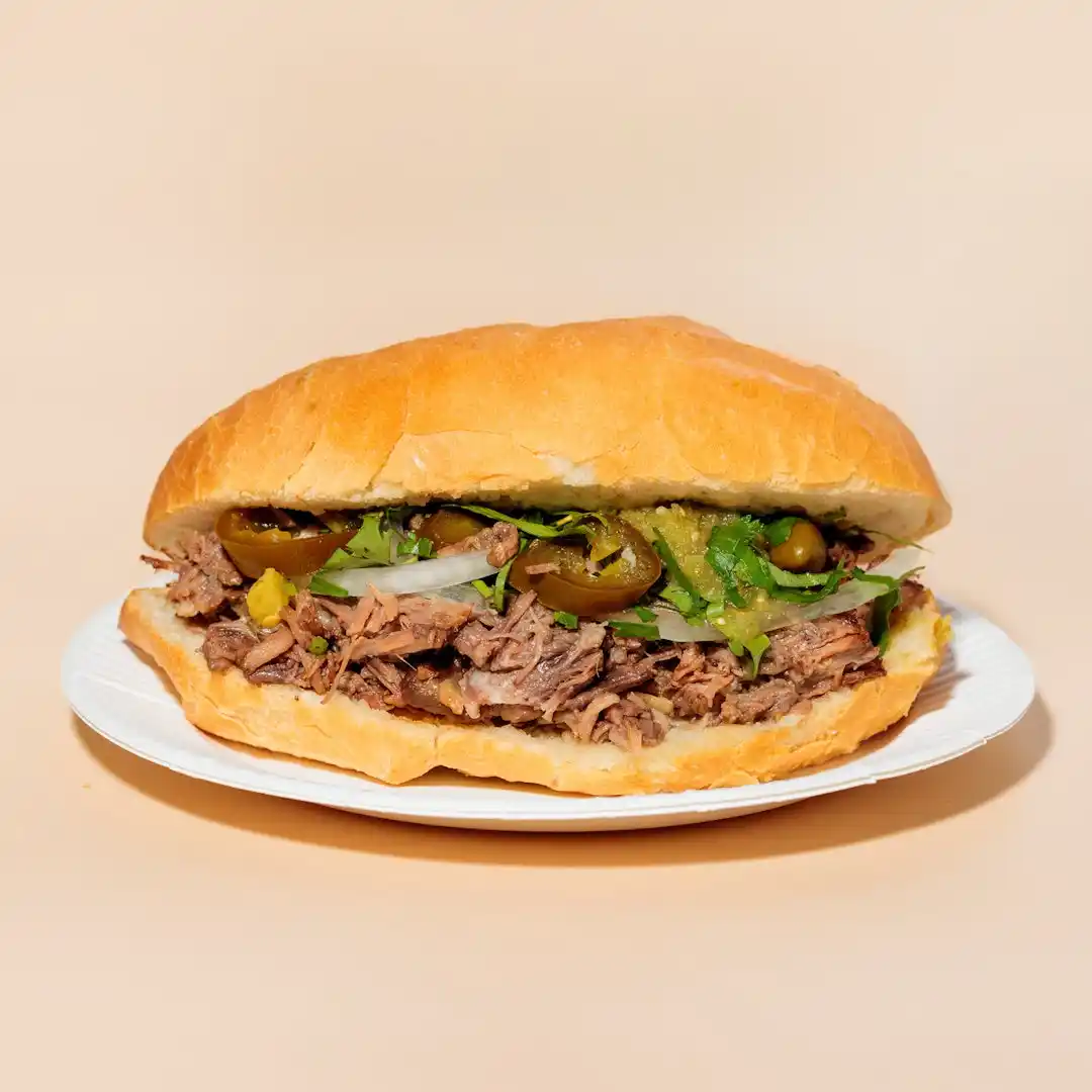 ANTOJITOS(軽食) には、人気のメキシコ式サンドイッチ 「Torta(トルタ)」 を提供。 ふんわりしたパンに肉・野菜・サルサを挟んだ、ボリューム満点のストリートフードで、朝食にもランチにもぴったりです。 |
