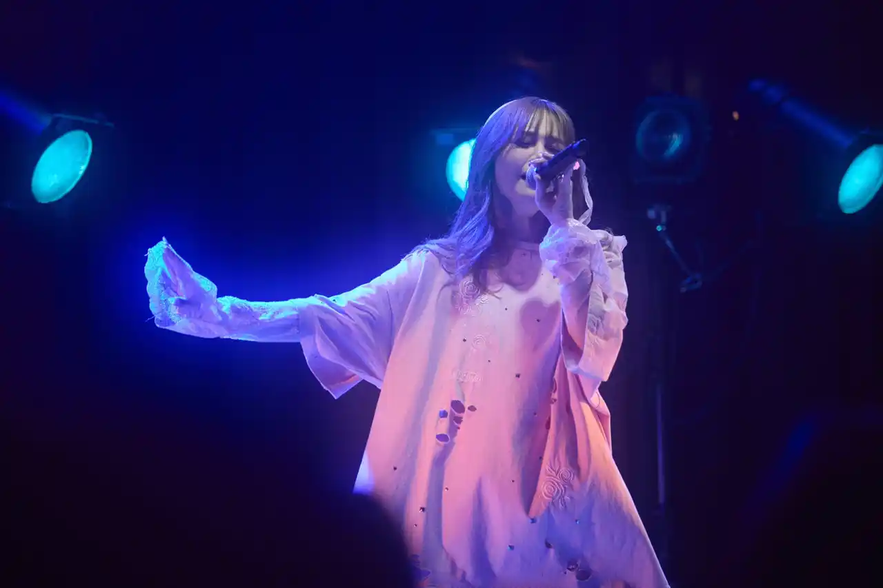 その後も、たくさんのファンに愛されている「lonely」、前日のリクエストを受けて追加された「夜明けがくるまで」を披露。そして、「ハートを壊されたことがある人もない人も、この曲を聴いて『ふーん』って思ってもらえればいいと思います。恋愛なんて別にしなくてもいいし、私のことを応援したかったらしていいし、離れたいと思ったら離れてくれていい。音楽は自由だと思ってます。だけど、ここにいるみんなは、私の味方だと思ってます」と語りかけ、最新シングルの「HEARTBREAKER」を誘った。胸のうちを吐露するように、大人びた声色で言葉を紡ぎあげていく。《ありがとう バイバイ 忘れないよずっと。》と呟きながら、左手のリングライトに視線を馳せるさまは憂いを帯びていた。 |