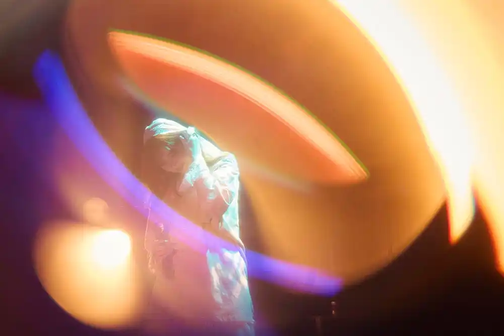 続いては、会場一体となって盛り上がるポップソングゾーンへ。「0時過ぎてもシンデレラ」がドロップされると、再びダンサーが顔を出した。恋に心弾ませる気持ちを歌とダンスに乗せて、ポップで軽やかに魅せていく。さらには、キーボードとダンサーの紹介に連ねて、「動揺している! 歌手を辞めない、シンガーソングライターのMACOです!」と力強く宣言。タオルやライトスティックがクルクルと空を舞う「Sweet and