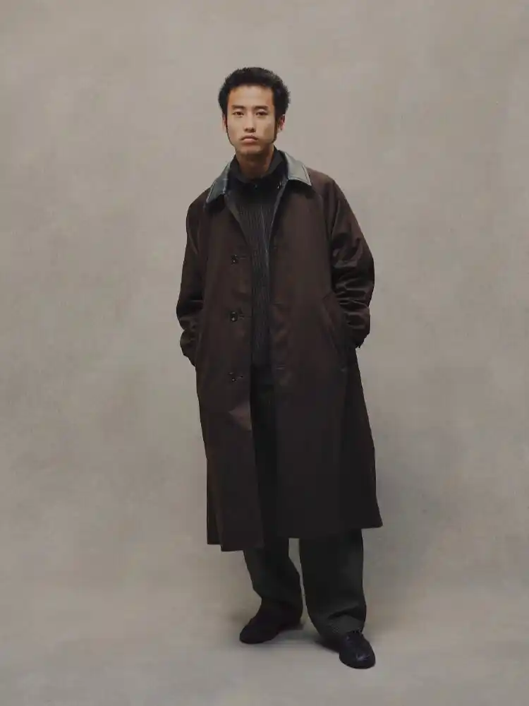 クリエイティブディレクター中田慎介氏の監修による、リバーシブルで異なる表情を楽しめるオーバーコート。 50周年記念ビジュアルにて中田氏が着用しているアイテムです。 コットンツイルと、ウールハウンドトゥース(千鳥格子柄)という異素材の組み合わせにより、機能性とファッション性を兼ね備えたコートに仕上がっています。 クラシックとモダンが共存するコートは、中田氏の感性とメンズビギのアーカイブが融合した、特別な1着です。 |