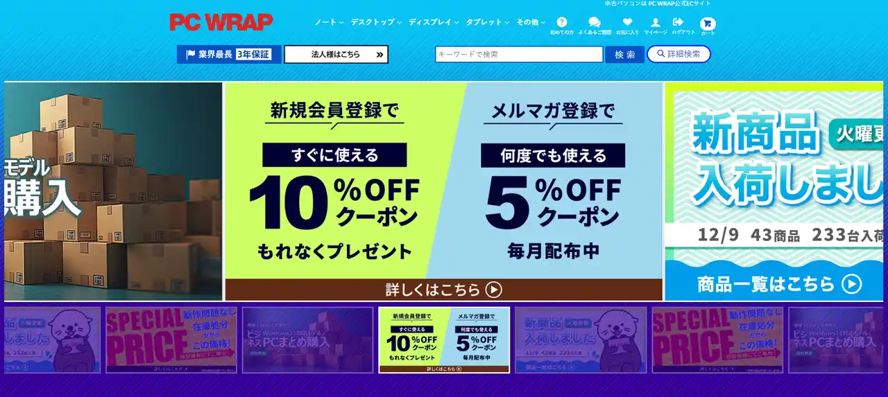 【株式会社エスエヌシー】 【最大51%OFF】中古パソコンショップのPC-WRAPでセールを2025年12月25日まで開催!