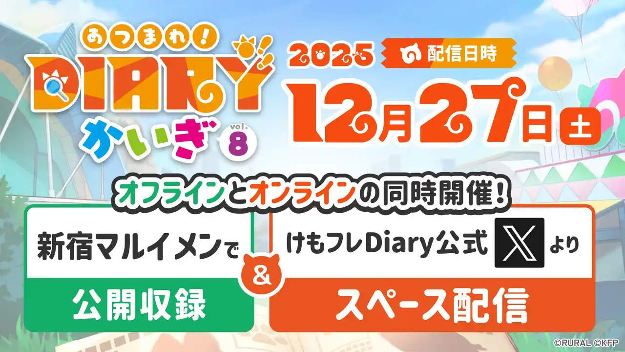 | 会場にて「あつまれ!Diaryかいぎ Vol.8 公開生放送参加権付きステッカー(税込4,000円)」を購入した方のみ公開生放送にご参加いただけます。 | |||
