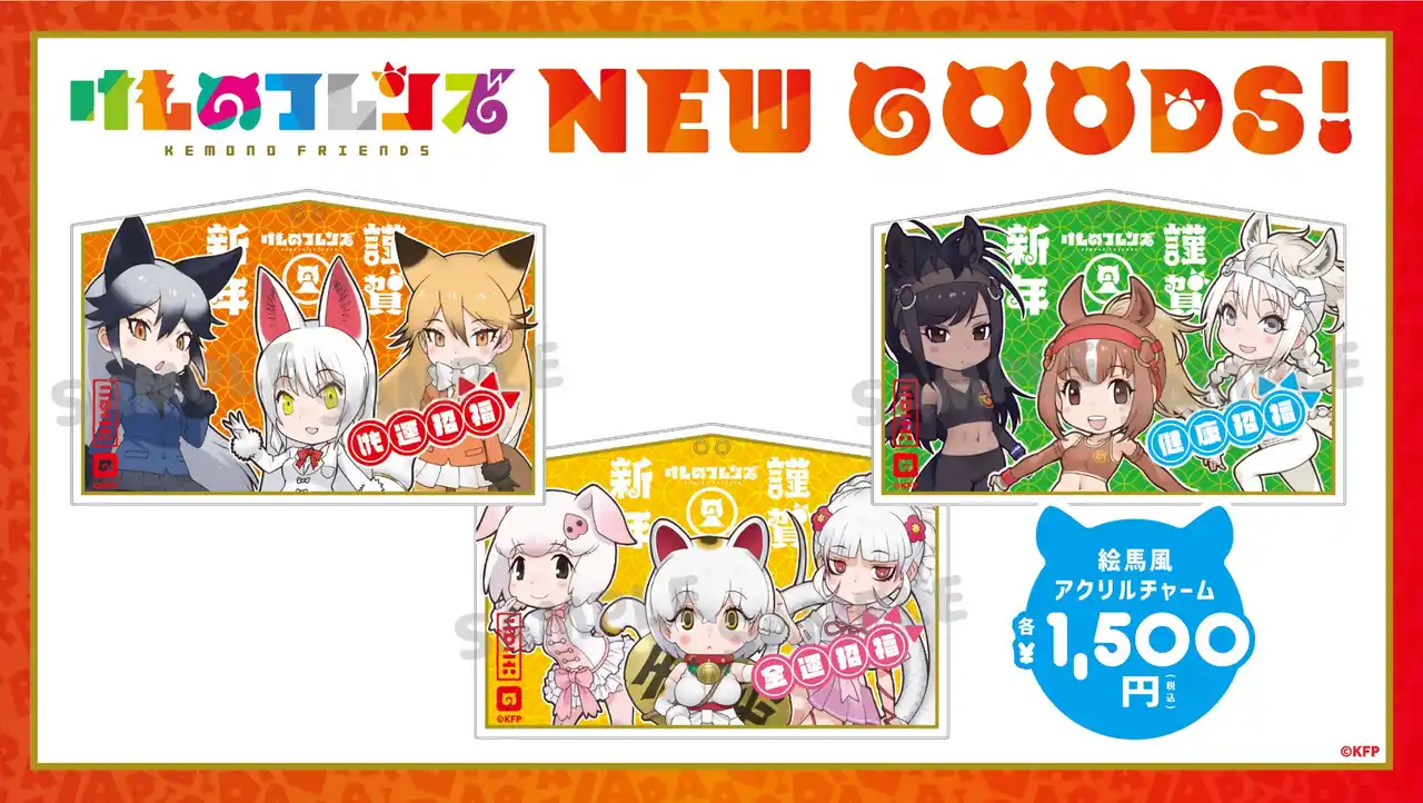 | ・けものフレンズ絵馬風アクリルチャーム(けも運招福、金運招福、健康招福) | |||
