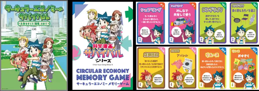 経済産業省は、サーキュラーエコノミー(循環経済)の認知拡大と理解促進、資源循環につながる行動促進を目的に、継続的に“学びの場”を提供しています。「サーキュラーエコノミーのがっこう」は、大阪・関西万博で開催された「サーキュラーエコノミー研究所」に続き、小学生に大人気の「科学漫画サバイバル」シリーズとコラボレーションした循環経済を楽しく学べる授業型イベントです。 「サーキュラーエコノミーのがっこう」in 東京では、授業コンテンツと展示コンテンツを実施します。授業コンテンツでは、小学生に人気の「科学漫画サバイバル」シリーズとコラボレーションしたオリジナル漫画『サーキュラーエコノミーのサバイバル』やカードゲームを通じて、楽しく学びながら循環経済の理解を深めます。また、参加者は授業で使用したオリジナル漫画とカードゲームをお持ち帰りいただけます。 |