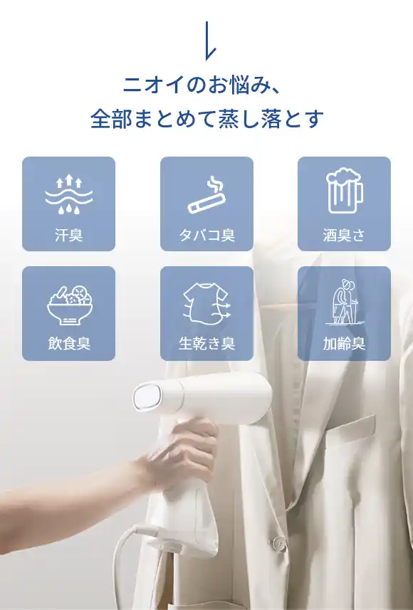 帰宅後の花粉落とし、アウターのニオイケア、 子ども服の除菌・ダニ対策まで、一家に一台で“衛生 × 見た目”両方が整います。 |