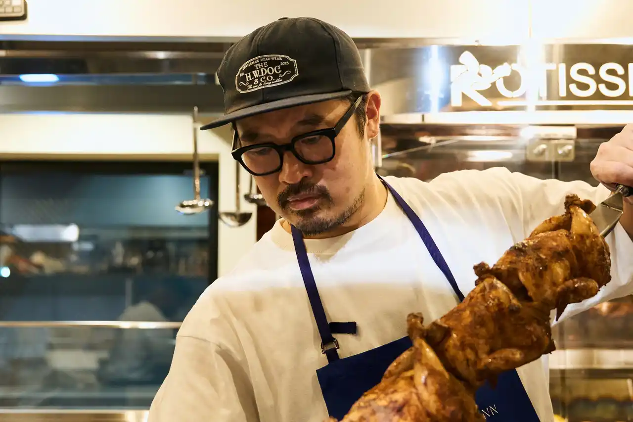 「RINN」の統括シェフは、ミシュランガイド東京2018でビブグルマンに選出された気鋭の料理人・亀谷剛。フランスで経験を積み、各国料理にも精通する柔軟な発想が、ロティサリー×クラフト焼酎という斬新な体験を生み出しました。 |