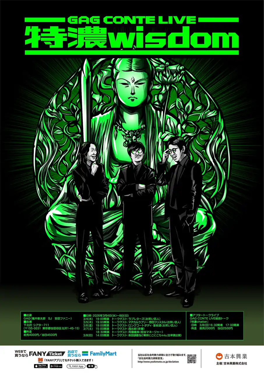 | この度、GAGによるコントライブ「GAG CONTE LIVE『特濃wisdom』」を、 2026年3月4日(水)から8日(日)まで、下北沢・シアター711にて計6公演開催することが決定しました。 | ||||||||||||||