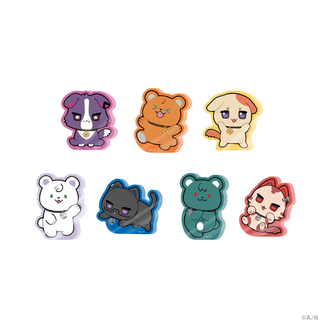 グッズラインナップはランダムフォト風カード、ランダムキラキラ缶バッジ、ラメアクリルスタンド、アートボード、ポージングぬいぐるみ、ステッカーセット、メタルチャーム、Tシャツ、ジャンボうちわ、うちわカバー、ペンライト、ペンライトカバー、ランダム刺繍缶バッジ、ふわふわ肉球ポーチ、ミニアクリルブロックの全15種類。 |