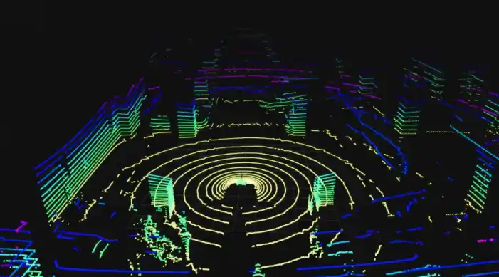 半径150mを検知しながら走行中の物体に対しても素早く検知し、事前に回避することができます。 |