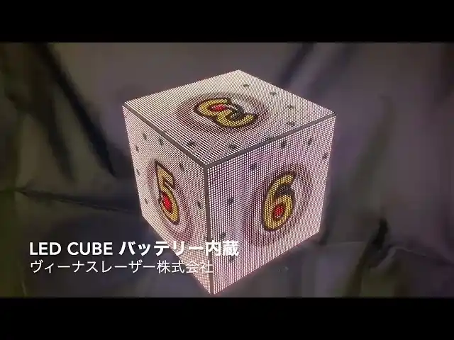 すべての面(6面)がLEDパネル(64×64ピクセル) しかもコンテンツの再生プレーやとバッテリーが内蔵されていますので、配線などが外部にありません。完全なLED CUBE パネルです。