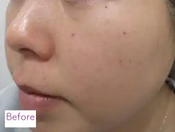 施術直後に赤み、ほてり、ヒリヒリ感が生じることがあります。 シミやそばかすの部分が反応し、一時的に濃くなる(薄いかさぶたのような状態)ことがありますが、通常1週間程度で自然に剥がれ落ちます。 稀に、火傷、水ぶくれ、色素沈着、色素脱失などが起こる可能性があります。 |