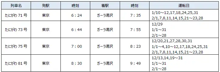 【ガーラ湯沢駅行きの東京発主な下り直通列車】 |