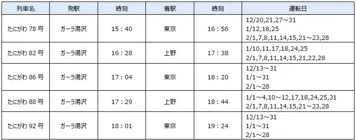 【スキー場からのお帰りに便利なガーラ湯沢発主な上り直通列車】 |