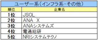 ◆ユーザー系(インフラ系・その他)TOP5 |