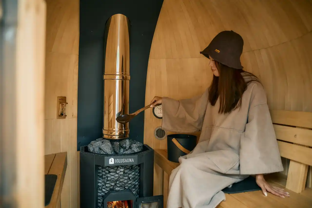 スタッフがロウリュする桶の中に、何の香りのアロマオイルが入っているかを嗅ぎ分けていただきます。 |