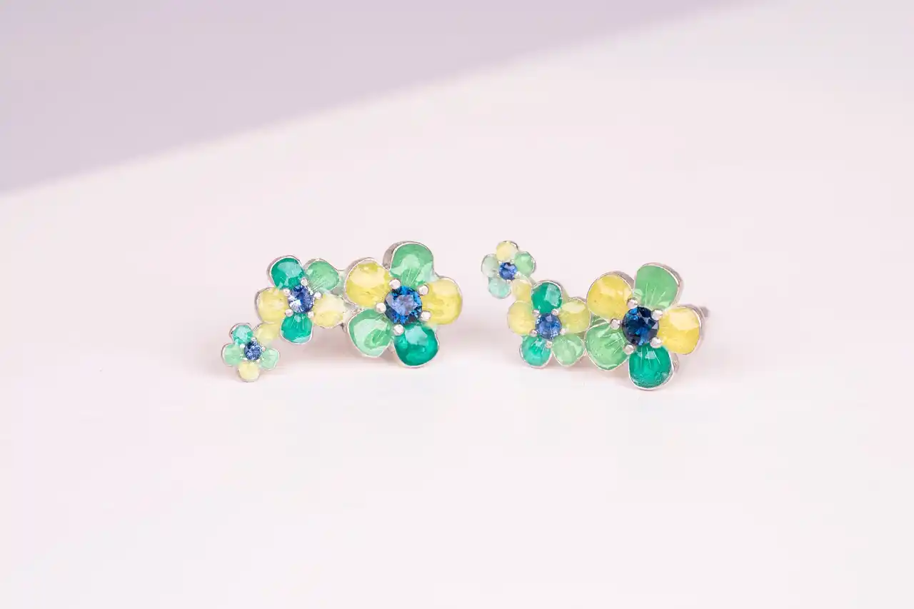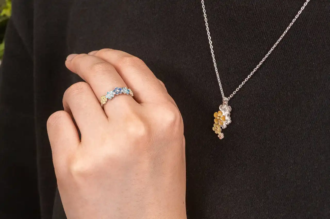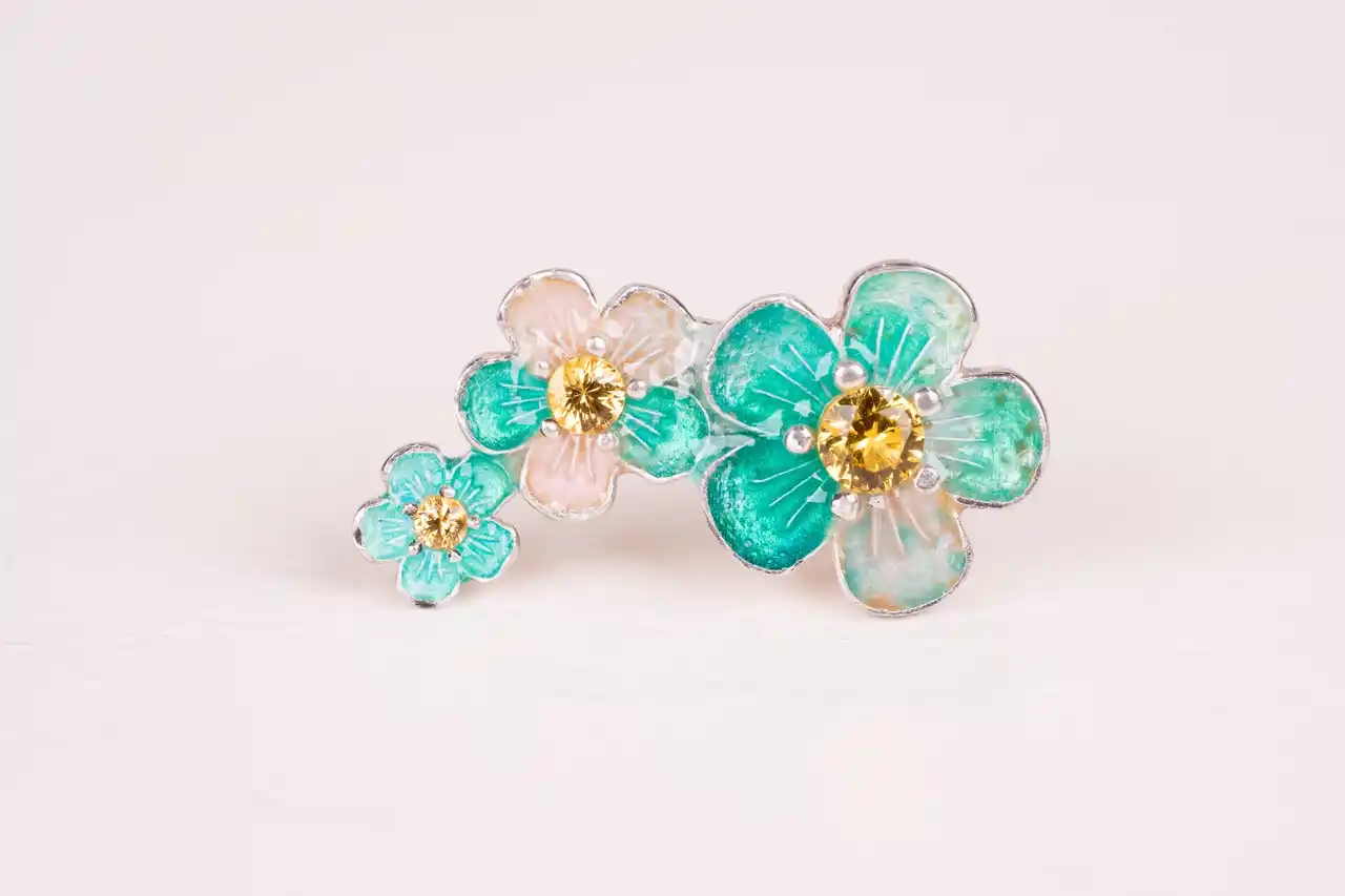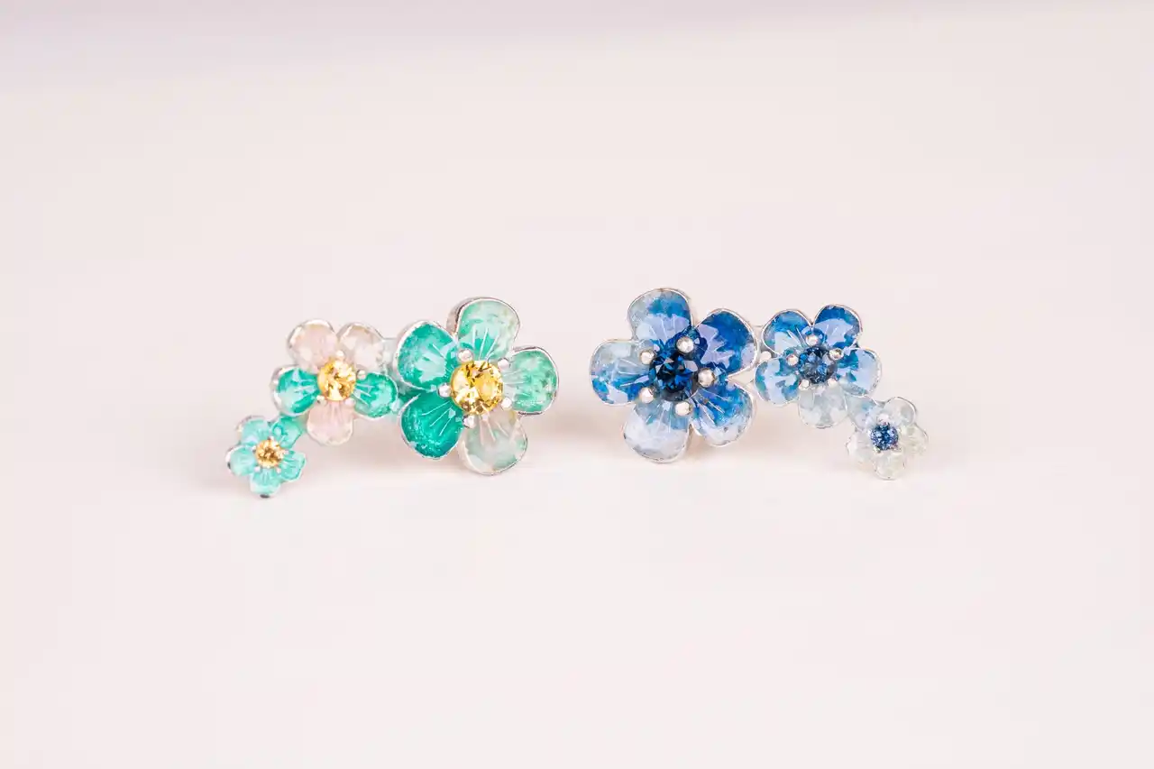 今回は第一弾として「花モチーフのセットアイテム」という形で、エマーユリング・エマーユピアス・エマーユネックレスの3つをご提供開始いたします。 |
