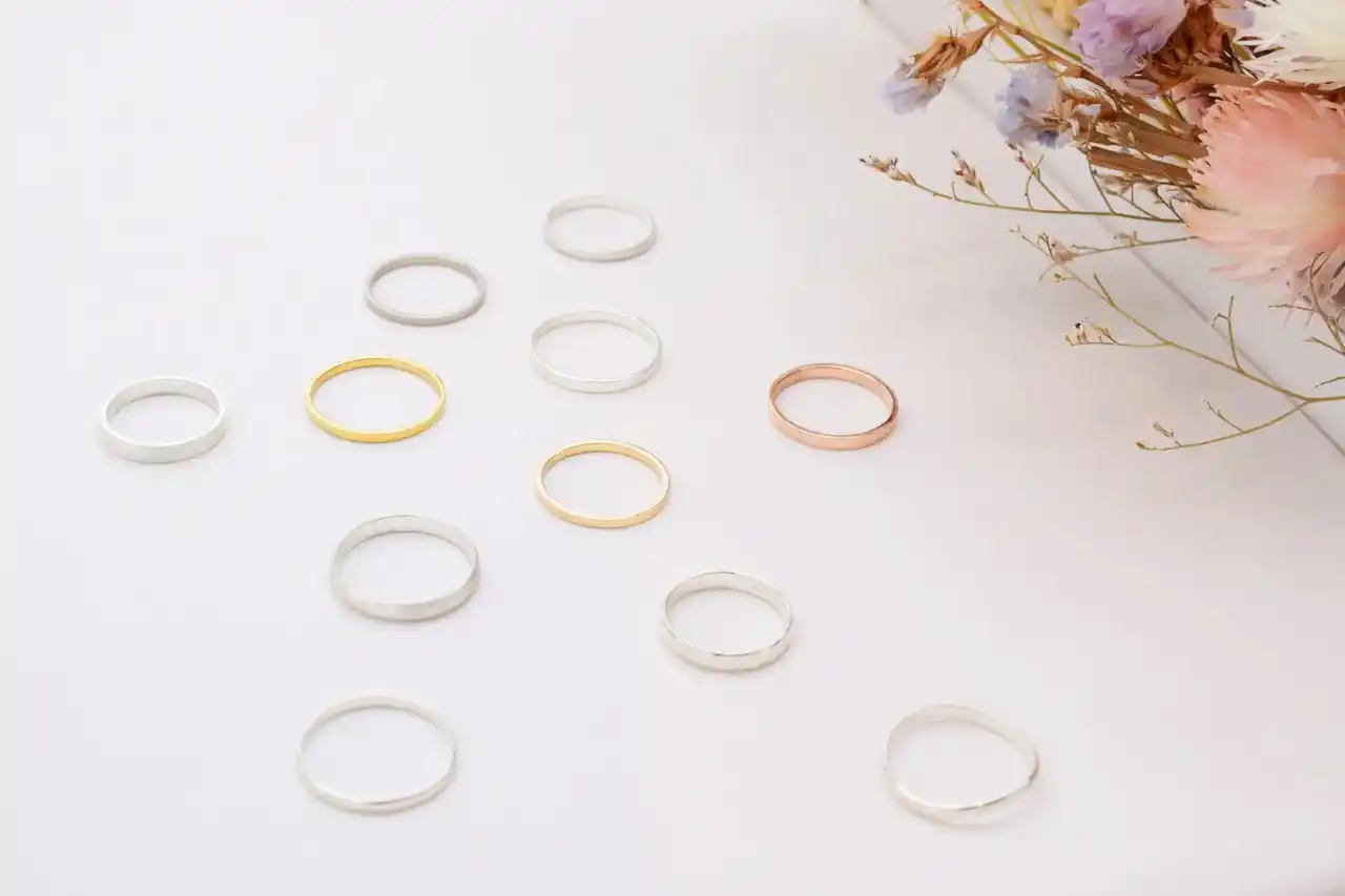 主力サービスである手作りペアリングでは、表参道店のおしゃれな工房にて制作いただける、多彩な金属素材とコースを用意しています。 |