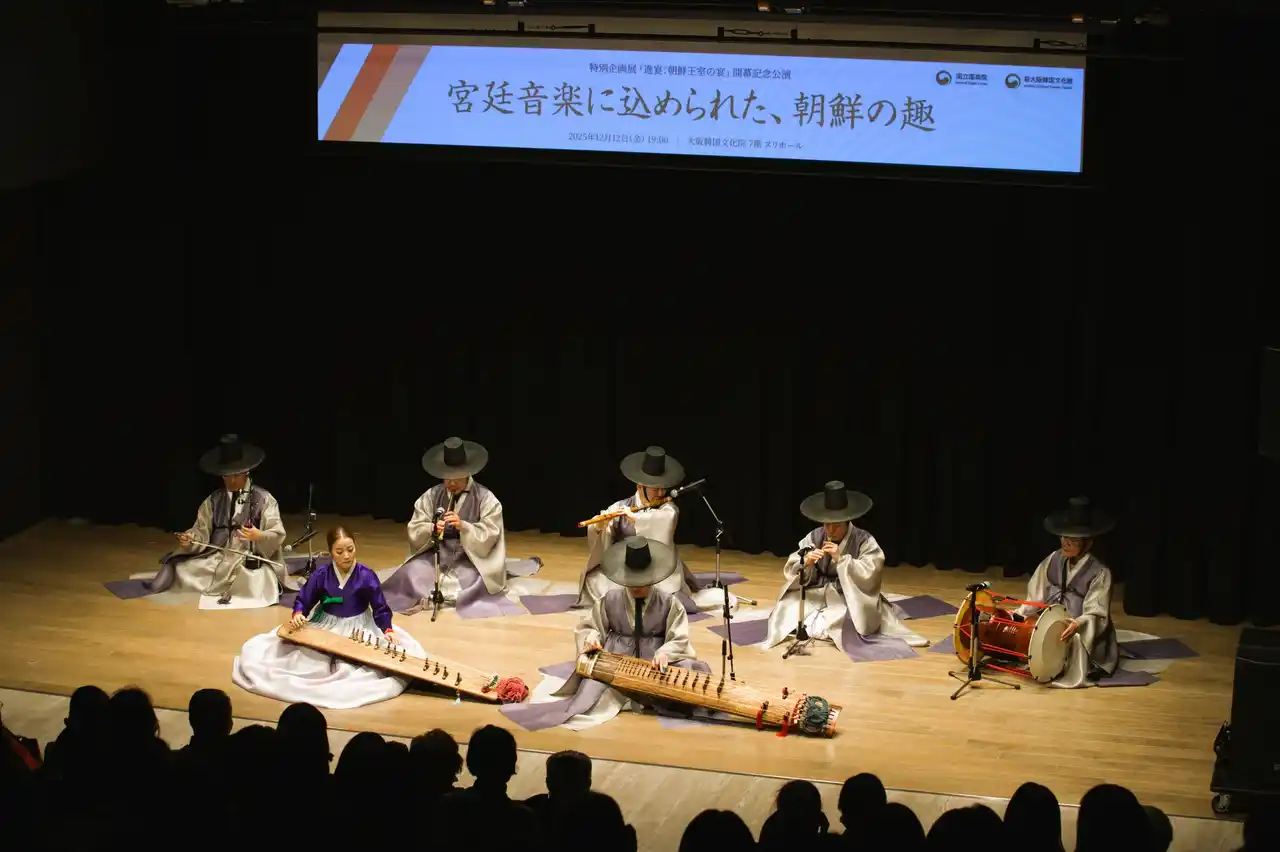 大阪韓国文化院(院長 キム・ヘス、大阪市北区東天満1-1-15)は、12月12日(金)より韓国 国立国楽院(院長職務代理 ファン・ソンウン)と共に、朝鮮時代の宮廷芸術にスポットを当てた特別企画展「進宴:朝鮮王室の宴」を開催します。今回の展示は、2024年に現在地に移転を果たした際に大阪韓国文化院で展示され、主に来賓などを迎えていた「壬寅進宴図屏(イミンジニョントビョン)」をテーマにした展示です。 |