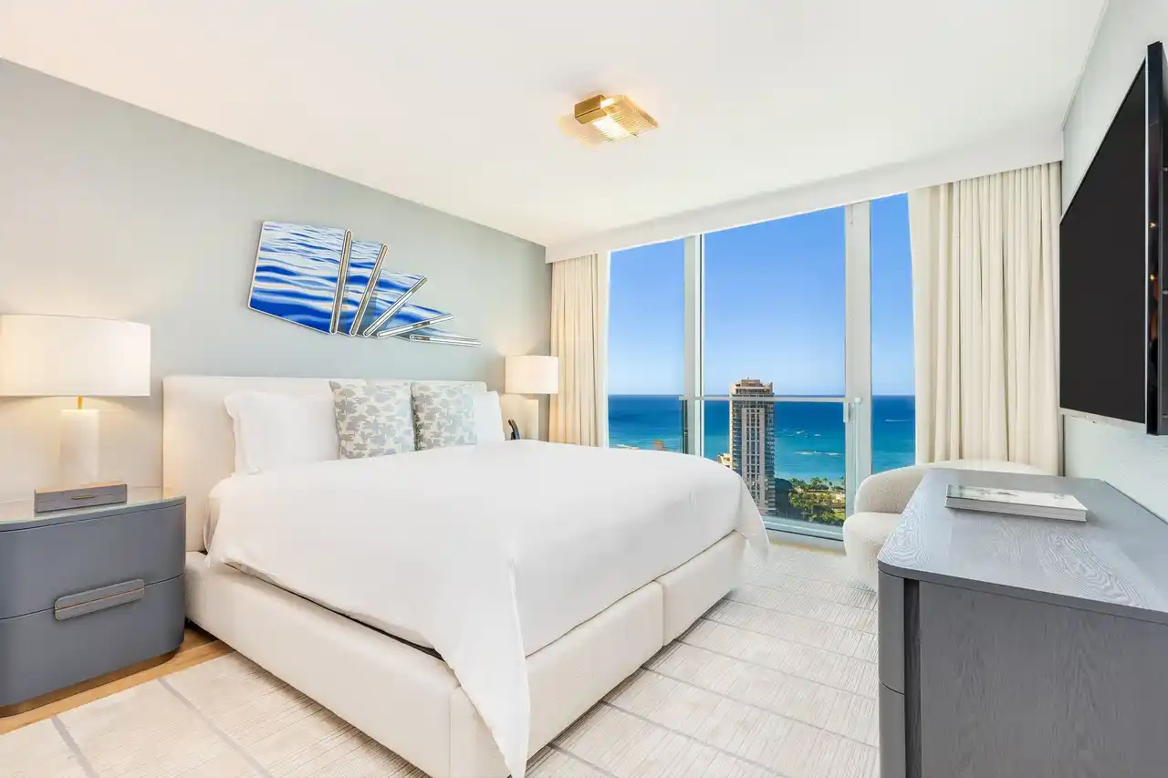 2018年開業の「ザ・リッツ・カールトン・レジデンス・ワイキキビーチ」は、地上100mからワイキキの海を望むタワーレジデンス。視界を遮る建物がなく、海風と光が満ちる空間で、ワイキキ・ホノルル・オアフ島の魅力を存分に堪能できる唯一無二のロケーションです。 |