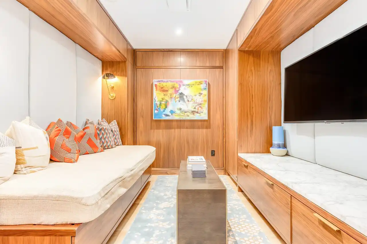 読書や映画鑑賞に最適なDENには大型モニターを備え、プライベートなミニシアターとしても利用可能です。 |