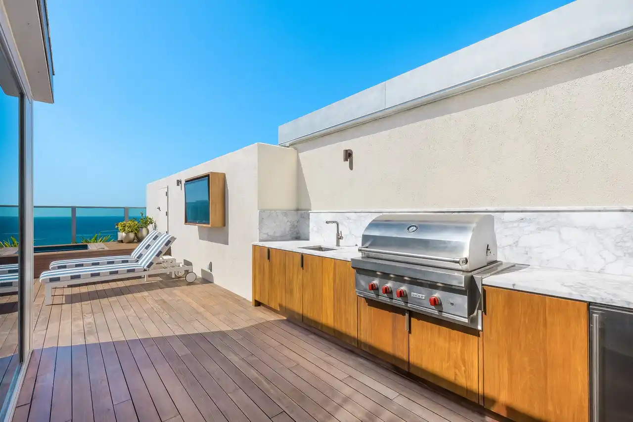 広々としたルーフトップにはインフィニティプールを備え、さらにBBQも楽しめるデッキスペースを完備。 |