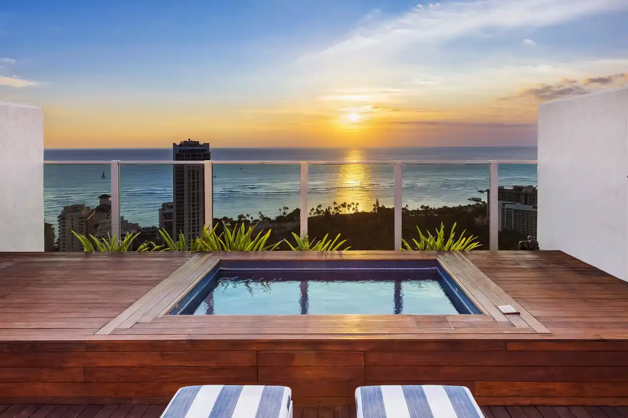 37・38階の2フロアと屋上テラスから構成されるメゾネット空間では、ワイキキのサンセットを独り占めするような特別な時間をお過ごしいただけます。 |