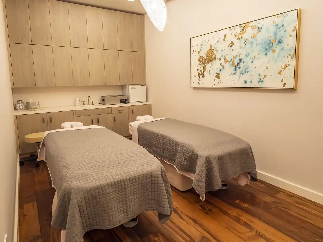 全4室のトリートメントルームのうち、一部はカップルやご夫婦で利用できる設計で、施術後はリラクゼーションラウンジでゆっくりとお過ごしいただけます。 |