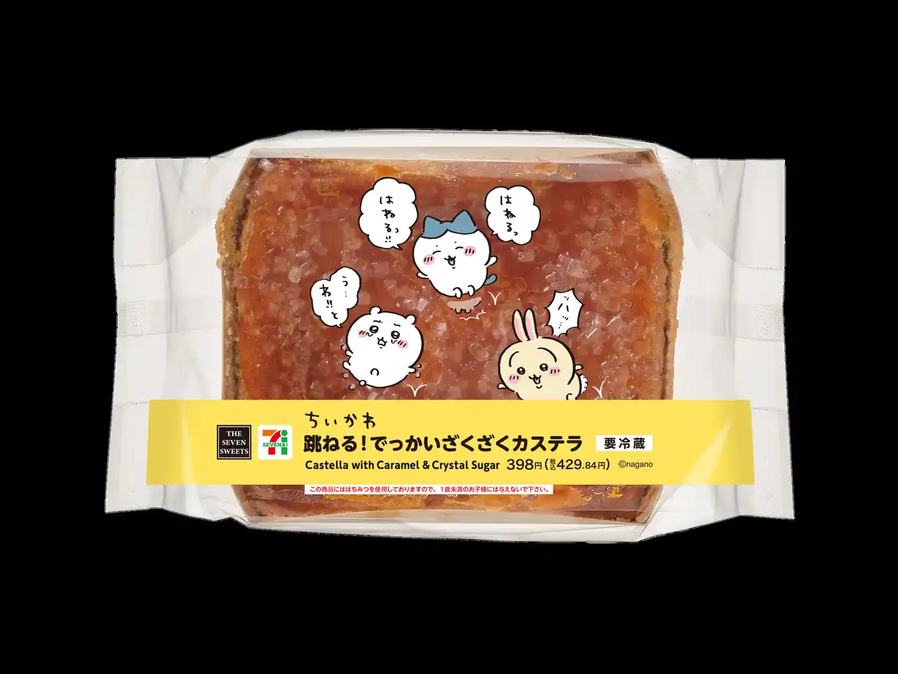 ちいかわたちが飛び跳ねていたザラメ付きカステラをイメージした商品。ザラメのざくざく食感としっとりとした生地のコントラストが楽しめます。 |