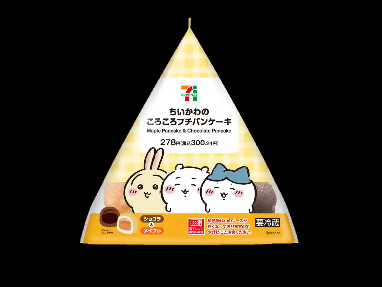 ちいかわとうさぎが食べていた巨大なホットケーキをイメージし、食べやすいサイズにした商品。ショコラとメイプルの2つの味が楽しめる甘みの詰まったパンケーキになりました。 |