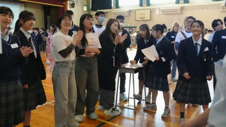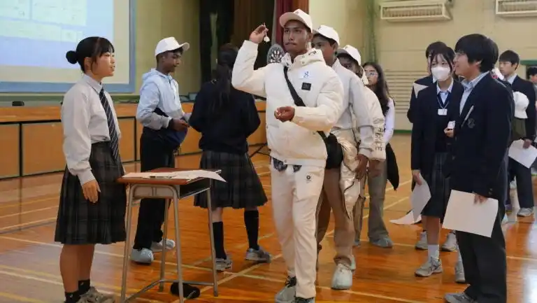 今回の交流会は、企画・運営・進行に至るまで代々木中学校の生徒が全面的に担当。ペア分け、ルール説明、司会進行、英語でのアナウンスなど、すべてを自分たちで実施しました。 |