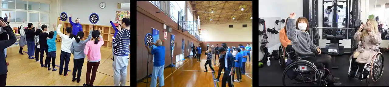 「ダーツを誰もが楽しめるスポーツに」というスローガンを掲げ活動をしています。生涯つづけることのできる「スポーツ」として老若男女・障がいの有無問わずいろいろな方がダーツをもっと気軽にはじめられるよう、全国の児童館や学校、自治体などを通してさまざまな活動をおこなっています。 |