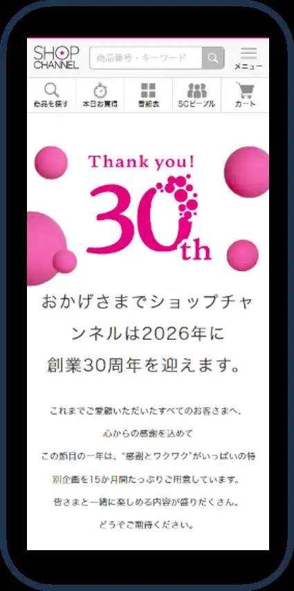 30周年イヤーは、お客さまの長年のご愛顧への感謝をお伝えするとともに、まだショップチャンネルを |