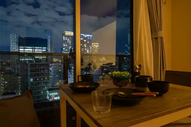 特長: 24時間コンビニエンスストア直結、高層階からの絶景夜景、12言語対応サポート |