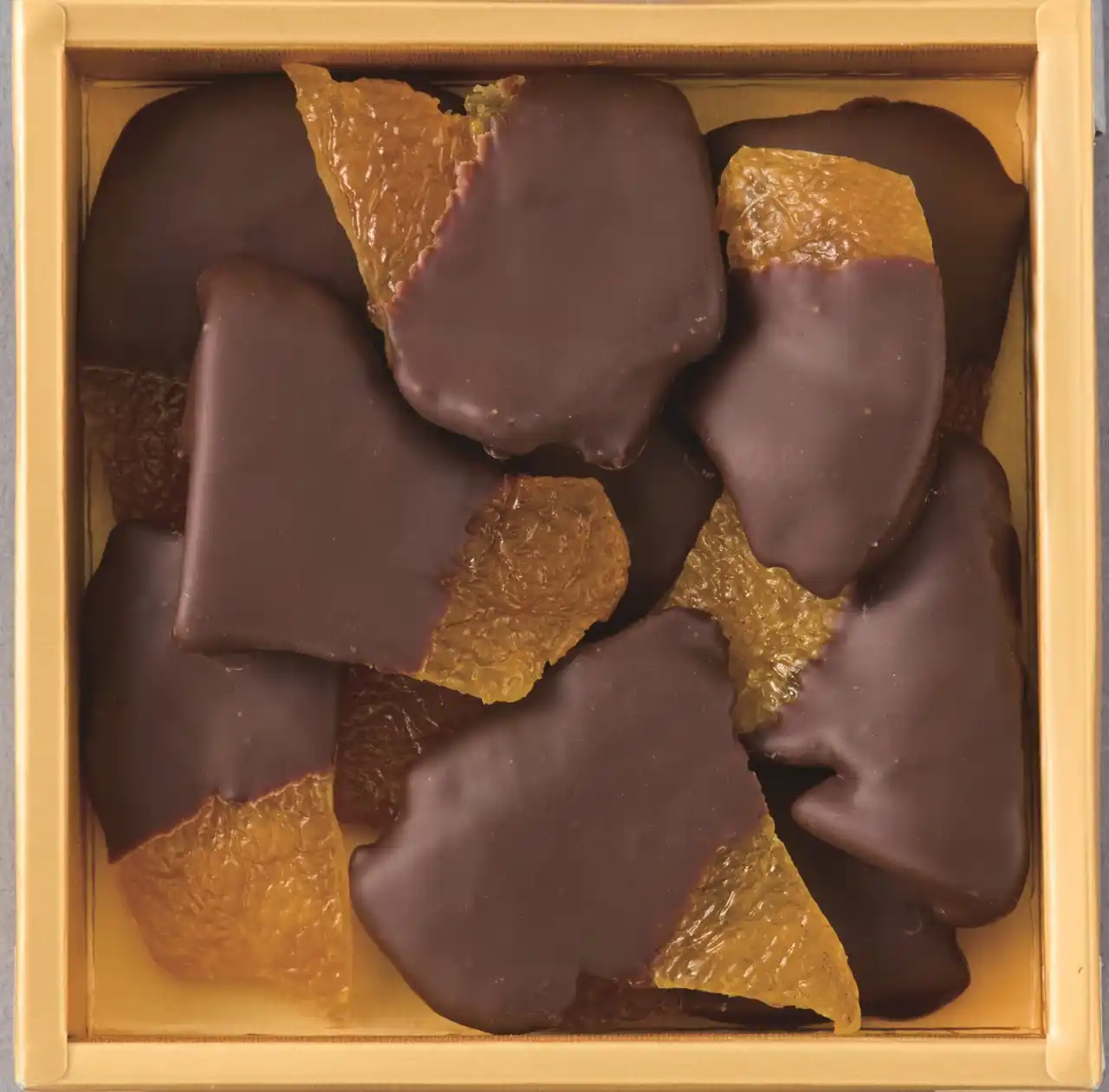徳島県の木頭柚子の搾汁後の果⽪を香りや食感を丁寧に残しつつコンフィにし、ショコラでコーティング。 |