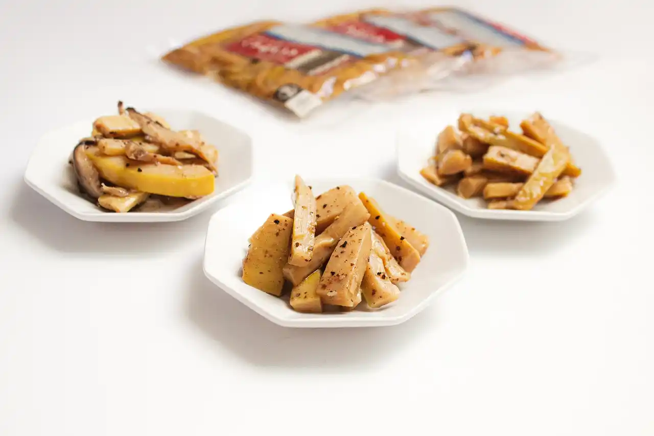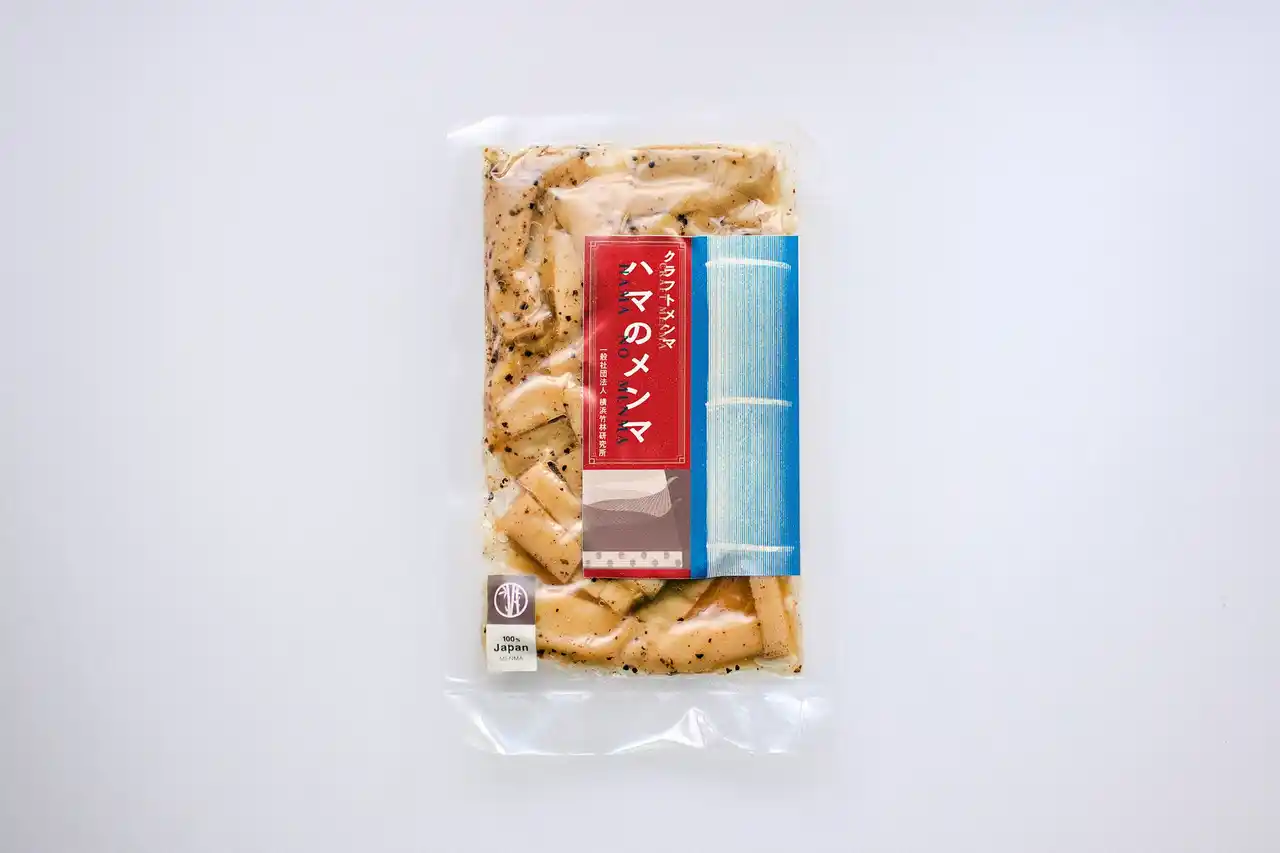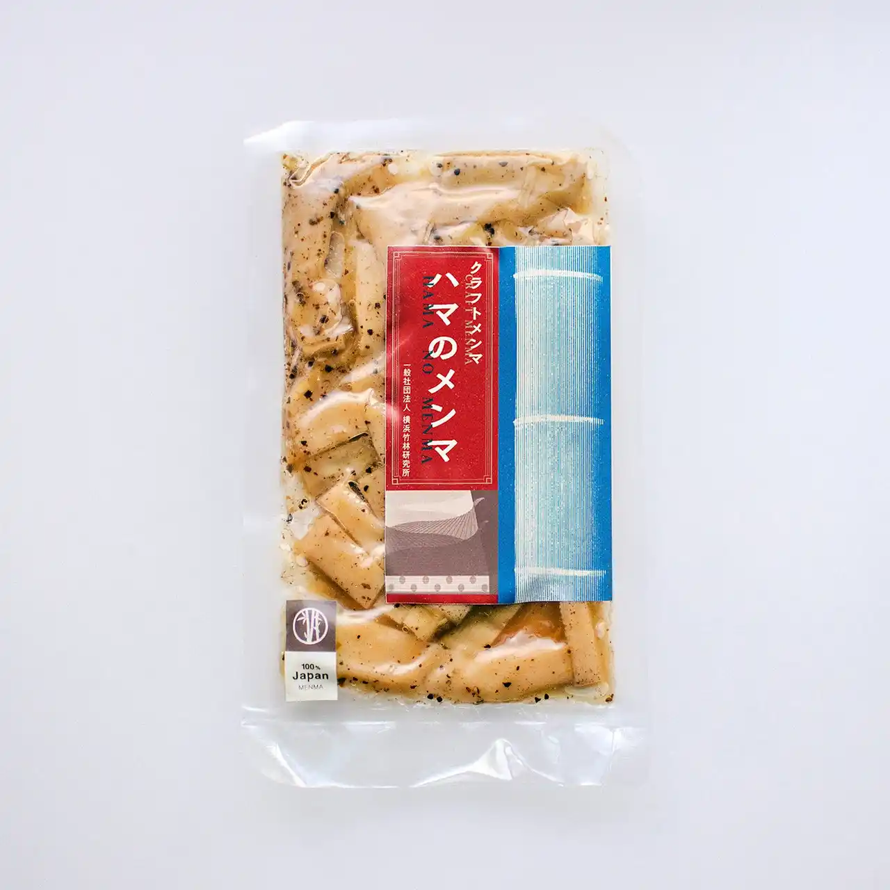 -40年以上愛された母の味をアップデート- 始まりは、代表の小林の母が営んでいた「小林惣菜店」の人気メニュー。甘さと辛さの絶妙な味わいが老若男女に好評で、2002年に閉店してからもファンが途切れることはありませんでした。長く続く、愛される味を後世に残したい。そんな小林の想いから、当時の味わいを残しつつ、横浜産の竹を用いた「クラフトメンマ」としてアップデートしました。無添加の和風・鶏ガラ出汁の旨味にしっかりと甘味を含ませ、ブラックペッパーをアクセントにした、ハマチクラボの「オリジナル」メンマに仕上げました。 |