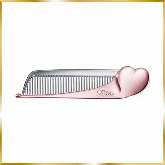 小さなバッグやポケットにもすっぽりと収まる、ハートデザインのヘアコーム。細かな毛束をとらえて整え、ツヤを与えます。 |
