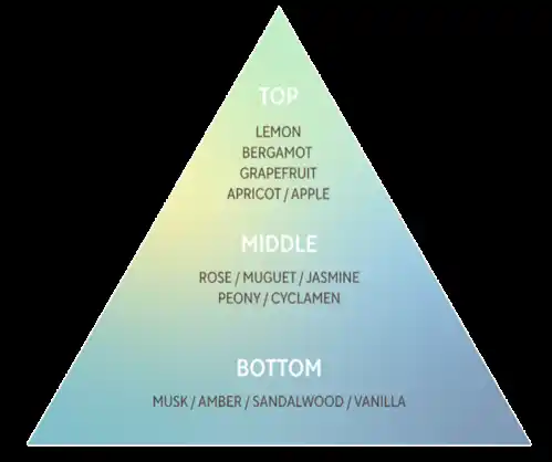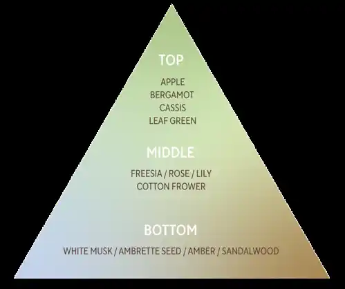 みずみずしいフローラル・フルーティーノートに、ムスク・アンバー・ウッディが包み込む清潔感と温もりが調和する穏やかな香り。 |
