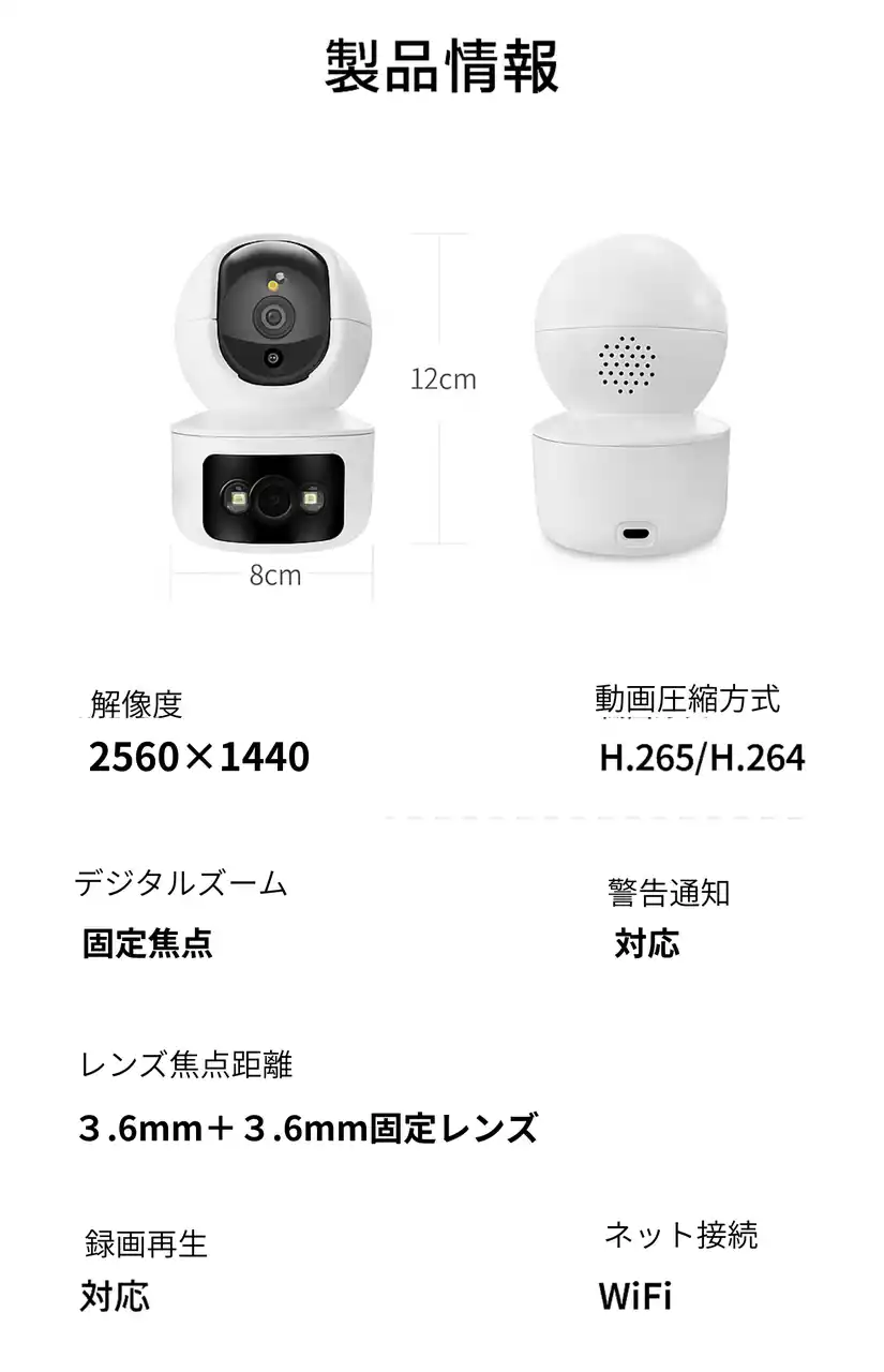 | 【ダブルレンズ搭載】1台で広く・クッキリ見える新世代スマートカメラ | |||