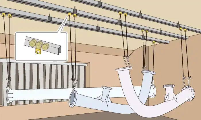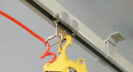 | 製造工場・物流倉庫などで、工具や半製品を吊り下げ移動するための吊車とレール等で構成した部品です。作業効率化に貢献します。また、防球ネット・ビニールシートの吊り下げ用部品もラインアップしています。 | |||||||||