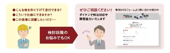 | 用途相談や特注相談の窓口となる専用WEBフォームを公開しました。ハンガーレールに関するご相談窓口を一本化し、よりスムーズな対応を目指します。 | |||||||||