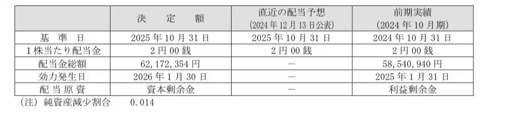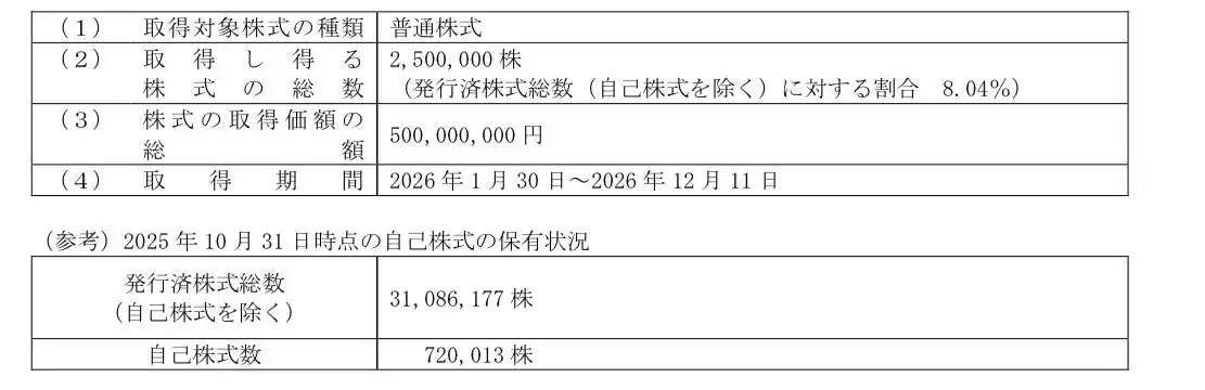 マーチャント・バンカーズ株式会社(以下、マーチャント社といいます。)は、2025年12月12日開催の取締役会において、2026年1月29日開催予定の第102期定時株主総会(以下、「本株主総会」といいます。)に資本準備金の額の減少を付議すること、本株主総会付議議案の効力発生を条件として、2025年10月31日を基準日とする剰余金の配当(資本剰余金を原資とした期末配当)を行うこと並びに自己株式取得に係る事項(会社法第165条第3項の規定により読み替えて適用される同法第156条の規定に基づく)について決議しましたのでお知らせいたします。 |