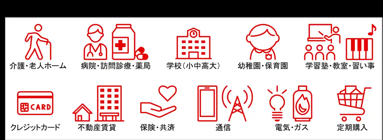 三菱UFJファクターの口座振替サービス「ワイドネット」は、様々な事業者さまにご利用いただいています。(年間の請求件数 2.6億件、取扱金額 8.9兆円 ※2024年度実績) |