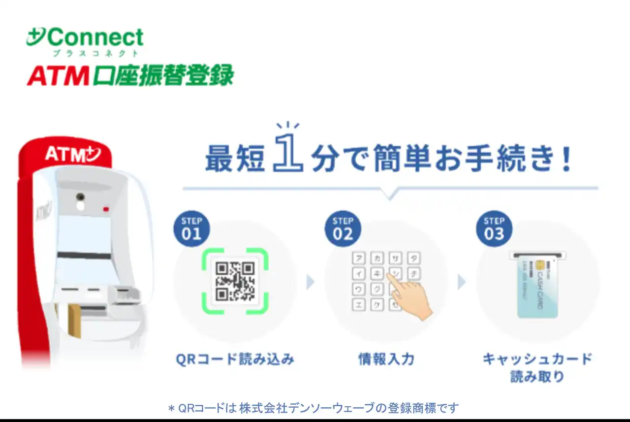 これにより、セブン銀行ATMで、最短1分で口座振替の登録手続きを行うことができます。